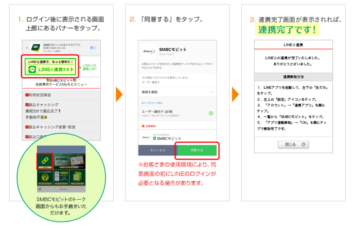 SMBCモビットは、LINEとの連携が可能です。しかも、LINEと連携するとお得な情報と、Myモビへすぐアクセスできるなど利便性も高まります。