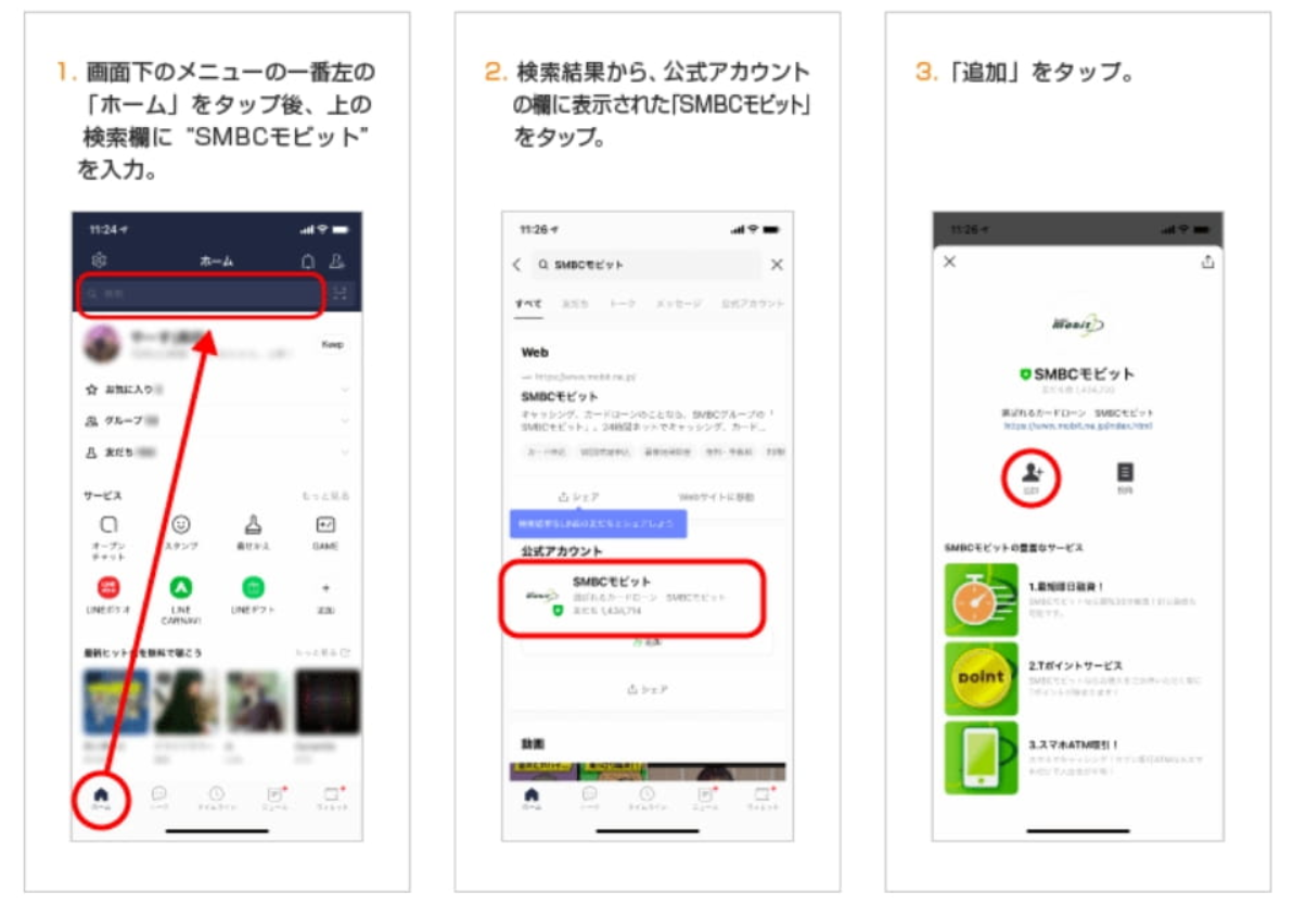 LINEからモビットカードのお申込やSMBCモビット公式スマホアプリのダウンロードも可能です。